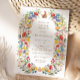 Beautiful invitations for a lovely Spring time Easter Brunch feature a spring garden Wildflower wreath border frame in beautiful pink, red, blue, green, yellow, and orange colours, and a sweet little bunny illustration. Elegant typography for all of your Easter party details.