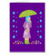 This adorable spring vector art illustration features a cute girl with a green umbrella, a purple raincoat, blue hair and bunches of bright and colourful pink, blue, yellow and orange flowers standing in the rain! This funky and stylish artwork is the perfect gift for anyone who loves original and beautiful cartoon art and springtime!