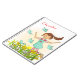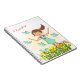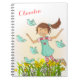 Cute graphic art of a dark haired girl in spring time chasing birds in a field of daffodils and wildflowers. Customise with your girls name, currently reads Claudia. Original graphic art and design by Sarah Trett.