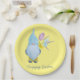 Cute watercolor tomte style gnome with sweet Spring bouquet of flowers on yellow background and customisable "Happy Easter" text.