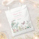 Pretty baby shower favour bag with wildflowers in pink, and cute butterflies. Perfect for a spring or summer baby shower. The words can be changed to suit your own details or requirements