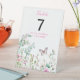 Pretty wedding table number sign with wildflowers in pink, and cute butterflies. Perfect for a spring or summer wedding. The words can be changed to suit your own details or requirements