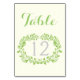 Spring green foliage wreath frame wedding table number place card featuring a green frame made of leaves and text in grey on ivory. This modern stylish and elegant template is a totally customisable design part of a wedding set perfect for your spring or summer wedding.