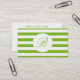 Spring Green Striped With Monogram Business Card
