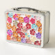 Spring Handmade sewn fabric Flowers Multicolor Metal Lunch Box