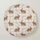Spring Hare And Carrot Rustic Beige Gingham Easter Round Cushion