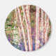Impressionistic mixed media painting of a creek running through the sunlit edge of a white-treed forest by Sheryl Karas.