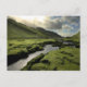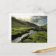 A postcard of the vibrant greens in a valley in the Highlands of Scotland, specifically the Isle of Skye