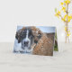Spring greeting card with encouragement that winter will soon be gone. Folded cards have a big St. Bernard dog on the front and his fur is matted with snow. Text is, “Snow? What Snow?” but inside the card is a spring scene with a little bunny, Easter eggs and green grass. Text inside says, “Hang in there, Spring is coming”. Send as encouraging words to anyone who has cabin fever or gets depressed over a long winter.