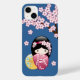 Spring Kokeshi Doll - Cute Japanese Geisha on Blue Case-Mate iPhone Case