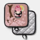 Spring Kokeshi Doll - Cute Japanese Geisha on Pink Pot Holder
