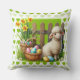 An Easter Lamb With Basket Of Eggs On A Green Throw Pillow With Green Hearts For Your Easter Decor