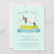 Cute spring lamb invites, featuring cute watercolor painting of a whimsical baby sheep skipping in a flower meadow with butterflies. Personalise with your own second birthday party details. Cute lamb on a teal aqua sky background. Other cute sheep art matching items available. © Uniquely painted in watercolor and designed by Sarah Trett.