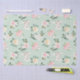 A pretty tissue for spring, birthdays, or showers, made as a seamless and clear image for your maximum customising pleasure. Shown here on a mint background is the sweet pattern of pink, yellow, and white watercolor print roses with leaves, accented with lamb's heads wearing flower crowns.