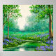 Oil paintings landscape, spring, tree in the forest, landscape with river
