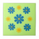 Hand-cut light blue and yellow flovers on the beautifull light green background on Ceramic Photo Tile for kitchen and home decor. *Every things you see on the products are hand made, but you must know that you get a photo!