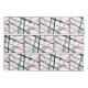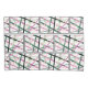 This pillowcase has a design of repeating blocks of lines that that cross each other in pink, darker pink, light green, darker green, cream, and black. If you like the design but prefer different colours, message me.