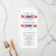 Elegant watercolor botanical wedding ceremony program with your names and details with a frame of watercolor green leaves and bright flowers in pink and blue and purple.