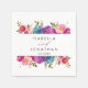 These garden chic napkins feature your names and date freamed by a wreath of watercolor pink and blue flowers and greenery,