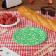 This white mandala sits on a bright spring green background. The colours are energising and light. Part of the Dagrewi Mandala Collection.