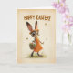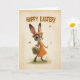 This adorable Easter card features a cheerful baby bunny in an orange dress, wearing a floral crown and carrying a basket of colorful eggs. Surrounded by butterflies and soft meadow textures, the illustration blends warm vintage tones with whimsical charm. Perfect for kids, families, and anyone who loves sweet, uplifting Easter art. Printed on premium cardstock for a beautiful seasonal keepsake.