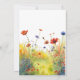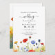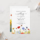This gorgeous wedding invitation card is a breathtaking and customisable piece that captures the essence of a meadow adorned with watercolor flowers in shades of yellow, blue, and red-orange. The card features a beautifully crafted design that showcases watercolor illustrations of wildflowers gracefully arranged to mimic a meadow in full bloom. The imagery is intricate, capturing the delicate details of each flower. The predominant colour scheme includes vibrant shades of yellow, creating a warm and cheerful backdrop. Interspersed among the yellow flowers are delicate blue blooms and pops of red-orange, creating a harmonious and visually stunning colour palette.