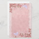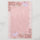 Stationery features soft pink blossoms with mauve butterflies on delicate lace edged pink background.. Lightly lined.