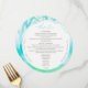 Wedding Menu Card with Morning spring forest with trees with leaves and shrubs against the background of the sunrise and light blue sky. Light sunlit airy blue turquoise country landscape with trees and lush green grass. Juicy gentle softness spring nature Wedding Menu Card. Spring Morning Collection.