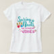 A vibrant spring-themed T-shirt design featuring colorful nail polish bottles, floral accents, and uplifting text that promotes relaxation and positive vibes