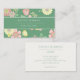These contemporary business cards with colourful floral background in green, pink and yellow, are stylish and playful. The design includes a modern set of fonts in matching green and ivory background at the back. Make a lasting impression with these playful and chic retro vibe cards.