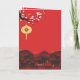 Beautiful Chinese illustration of a city by spring night with cherry blossoms, lantern (with Rabbit ideogram), "Happy Chinese New Year" in Chinese and English and custom 2023 + Rabbit paper-cut(image printed). Design on vertical greeting card. Matching holiday postcard and more... Perfect for Chinese New Year of The Rabbit 2023.