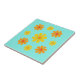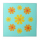 Hand-cut orange and yellow flovers on the beautifull light blue background on Ceramic Photo Tile for kitchen and home decor. *Every things you see on the products are hand made, but you must know that you get a photo!
