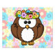 This sweet little spring owl is surrounded by colourful flowers. The cute, brown and white owl wears a crown of flowers in honour of the season.