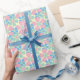 This pretty floral pattern features a springtime palette of soft pastel hues including blue, pink, green and yellow. It is perfect for Easter or any time of year.