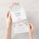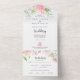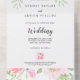 This spring peony wedding all in one invitation is perfect for a classy wedding. The modern spring or summer design features elegant watercolor pastel pink peonies and sage green leaves with a rustic country feel.