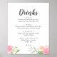 Spring Peony Wedding Drinks Menu Sign