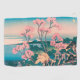 Japanese painting of people having a picnic under the cherry trees at spring blossom time, with Mount Fuji in the distance.