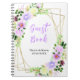 This beautiful and elegant wedding guest book features watercolor purple flowers and foliage on a gold geometric frame. The text combines handwritten script and serif fonts for a stylish and modern look. This is perfect for a spring rustic wedding.
