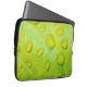 This 13” Laptop Sleeve features an original abstract photograph by ZoeSPEAK of raindrops on a leaf. In the closeup photo, we see the texture and veins of the leaf magnified in the contours of the water droplets. The shiny yellow green leaf reflects the blue and yellow of the sky and sunlight.