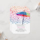 A trendy invitation featuring a colourful umbrella and rainbow-coloured raindrops. Perfect for a baby shower or a bridal shower.