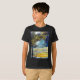 100% cotton so perfect for summer, It is a nicely designed t-shirt, the fabric is soft and the seams finished well, the body of the t shirt has no side seams. I bought a medium size for my two grandsons, aged 9 and 8 it will be slightly big on them but I would rather that than too small