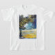 100% cotton so perfect for summer, It is a nicely designed t-shirt, the fabric is soft and the seams finished well, the body of the t shirt has no side seams. I bought a medium size for my two grandsons, aged 9 and 8 it will be slightly big on them but I would rather that than too small