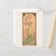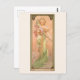 A fashion postcard with the fine art illustration from the Art Nouveau Period, titled Spring (1900), by Alphonse Mucha (1860-1939), a Czech Artist. A woman in a green dress with a bouquet of flowers to personify the spring season. The Seasons or Four Seasons Series is the name of three different colour lithograph series produced by the artist. They were produced in 1896, 1897, and 1900.