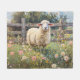 Spring Sheep with Wildflowers Painting Fleece Blanket