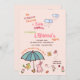 A spring-theme baby shower invitation with a bird, bunny, butterfly and flowers under an umbrella. The top border features rain clouds and raindrops.(<a href='https://www.freepik.com/free-vector/hand-drawn-spring-element-collection_837923.htm'>Designed by Freepik</a>). <br/><br/>The card is easy to customise with your wording, font, font colour, paper shape options and choice of six paper types.<br/><br/>Not exactly what you're looking for? All our products can be custom designed to meet your needs at no extra charge.<br/><br/>Simply contact us at heartfelthelper@gmail.com.<br/><br/>Coordinating products available: Just ask us!