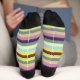 Colours for Spring Stripes designed socks. Customers can add text to personalise for each person.