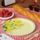 This spring season paper plate features beautiful yellow daffodils flowers on a cheerful yellow and white striped background. Use this party plate for your spring gatherings, and for Easter or Mother's Day holiday parties.