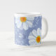 Spring Summer White Flower Blue Pattern Large Coffee Mug