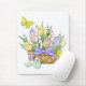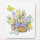 Pretty basket of Tulips and Pussy Willow. Cute garden insects embellish the scene. There are butterflies, a ladybug and caterpillar. A cheerful way to welcome spring.