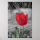 A digitally hand-coloured portrait of a red tulip in bloom.